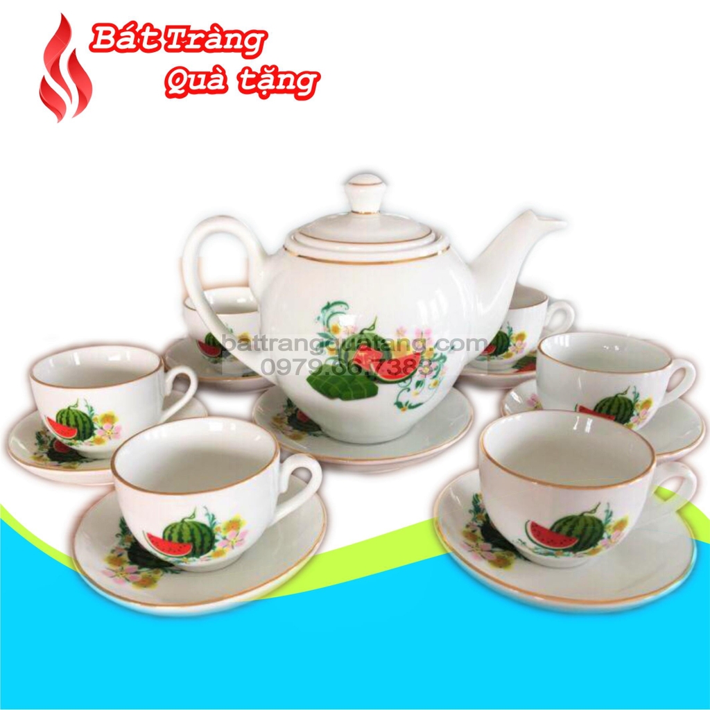 Bộ ấm chén dưa hấu kẻ chỉ vàng kim được làm thủ công hoàn toàn từ khâu tạo hình đến khâu hoàn thiện. Từng nét vẽ thủ công tỉ mỉ, tinh tế và không kém phần sang trọng, tôn thêm nét nổi bật so với dòng sản phẩm khác.