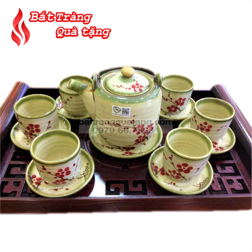 Bộ ấm chén hoa đào dáng vại men ngọc được làm thủ công hoàn toàn từ khâu tạo hình đến khâu hoàn thiện. Từng nét vẽ thủ công tỉ mỉ, tinh tế và không kém phần sang trọng, tôn thêm nét nổi bật so với dòng sản phẩm khác.