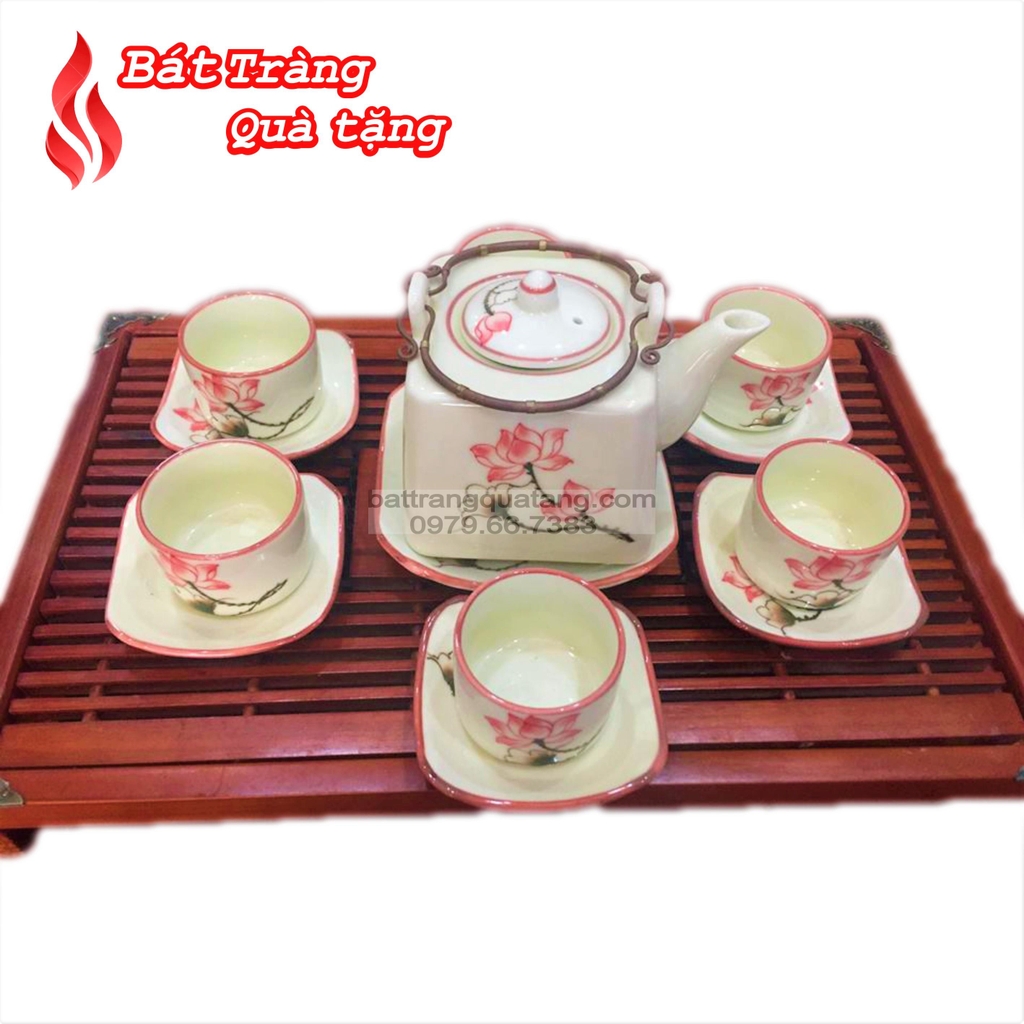 Bộ ấm chén vẽ hoa sen dáng vuông men kem được làm thủ công hoàn toàn từ khâu tạo hình đến khâu hoàn thiện. Từng nét vẽ thủ công tỉ mỉ, tinh tế và không kém phần sang trọng, tôn thêm nét nổi bật so với dòng sản phẩm khác.